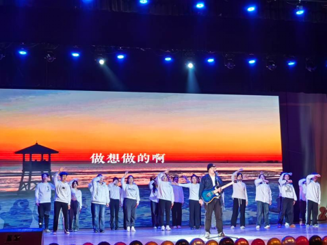 在“再创辉煌”篇章中,丰富的节目内容使在场师生在喜庆与祥和的乐声中,共同眺望美好的未来。本篇章的文艺节目包括体现“青春”“奋斗”“理想”的《拒绝再玩》《山海+鲜花》《老男孩》和旅游协会原创歌曲《去做你想做的吧》。最后,晚会在旅游系师生代表合唱的《我和我的祖国》中画上完美句号。