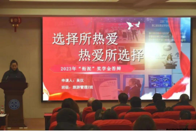 副院长靖鲲鹏,副处级辅导员张薇,旅游系党支部书记李凌雁,旅游系副主任高磊担任评委,2022级本科生陈妍潼主持,各年级学生代表80余人现场观摩。