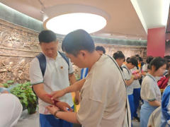 随后踏入东北亚古丝路文明博物馆,志愿者为学生们系上不同颜色的丝带,丝带如同连接古今文明的线索,带领师生们共同解密博物馆里的“文化密码”。学生们凝视着承载历史记忆的文物,穿越时空,深切感受古丝路文明的魅力与中华历史文化的博大精深。