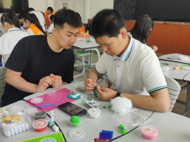 随后的经管楼互动体验更是趣味盎然。在手工艾草香囊挂件制作环节,学生们穿针引线,精心制作出小巧玲珑的粽子挂件,成就感满满。在“记忆中的燕大”创作环节,他们以彩铅绘图、用粘土塑形,将上午参观的深刻印象化作充满童趣的艺术作品。